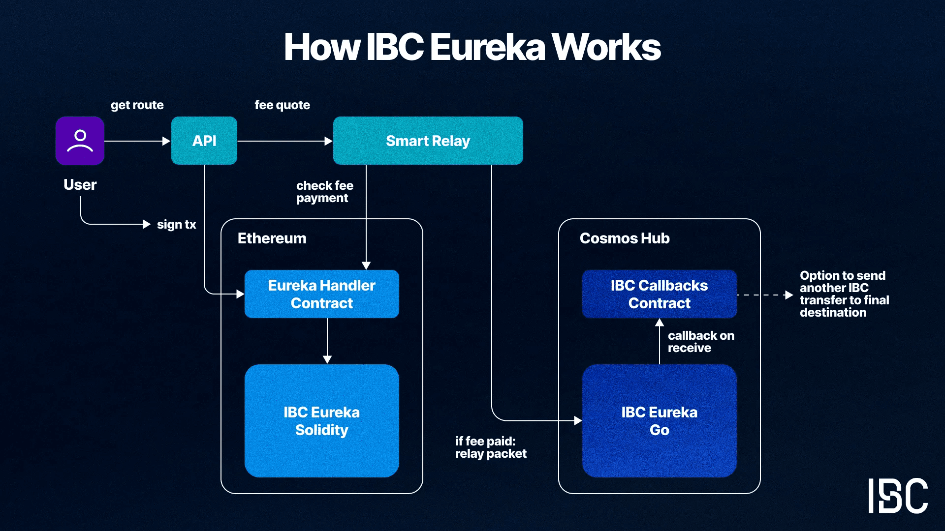 - IBC Eureka simplifies cross-chain communication between Cosmos and Ethereum by reducing infrastructure overhead, improving usability, and enabling seamless token transfers and onboarding.