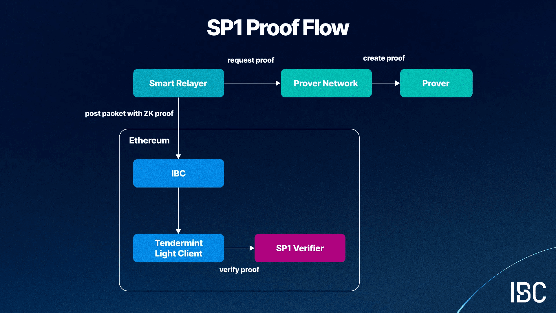 The lifecycle of a proof with SP1 for verifying the consensus of a Cosmos Chain on Ethereum.